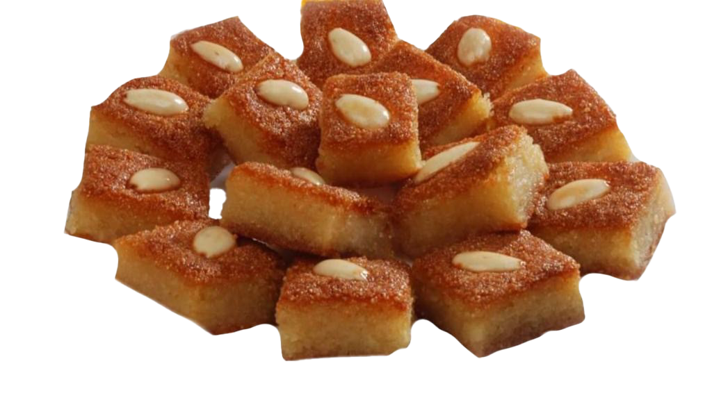 Semolina cake topped with almonds